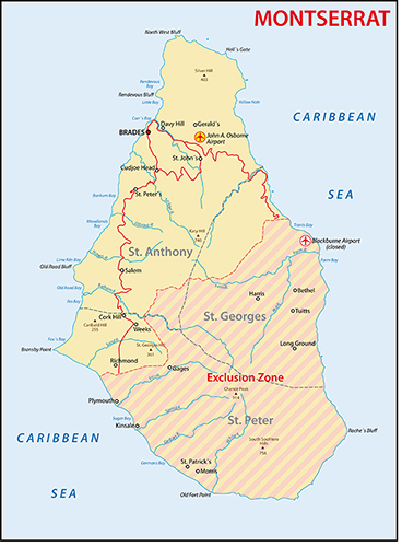 The Caribbean island of Montserrat is a tiny overseas territory of the United Kingdom located in the Leeward Islands northwest of Guadaloupe. Like its sister islands of St. Kitts, Barbuda and Antigua, it is a Paradise of lush hillsides, white beaches and coconut palms with ideal suntan weather all year long. Or, it was. But what happened to Montserrat?